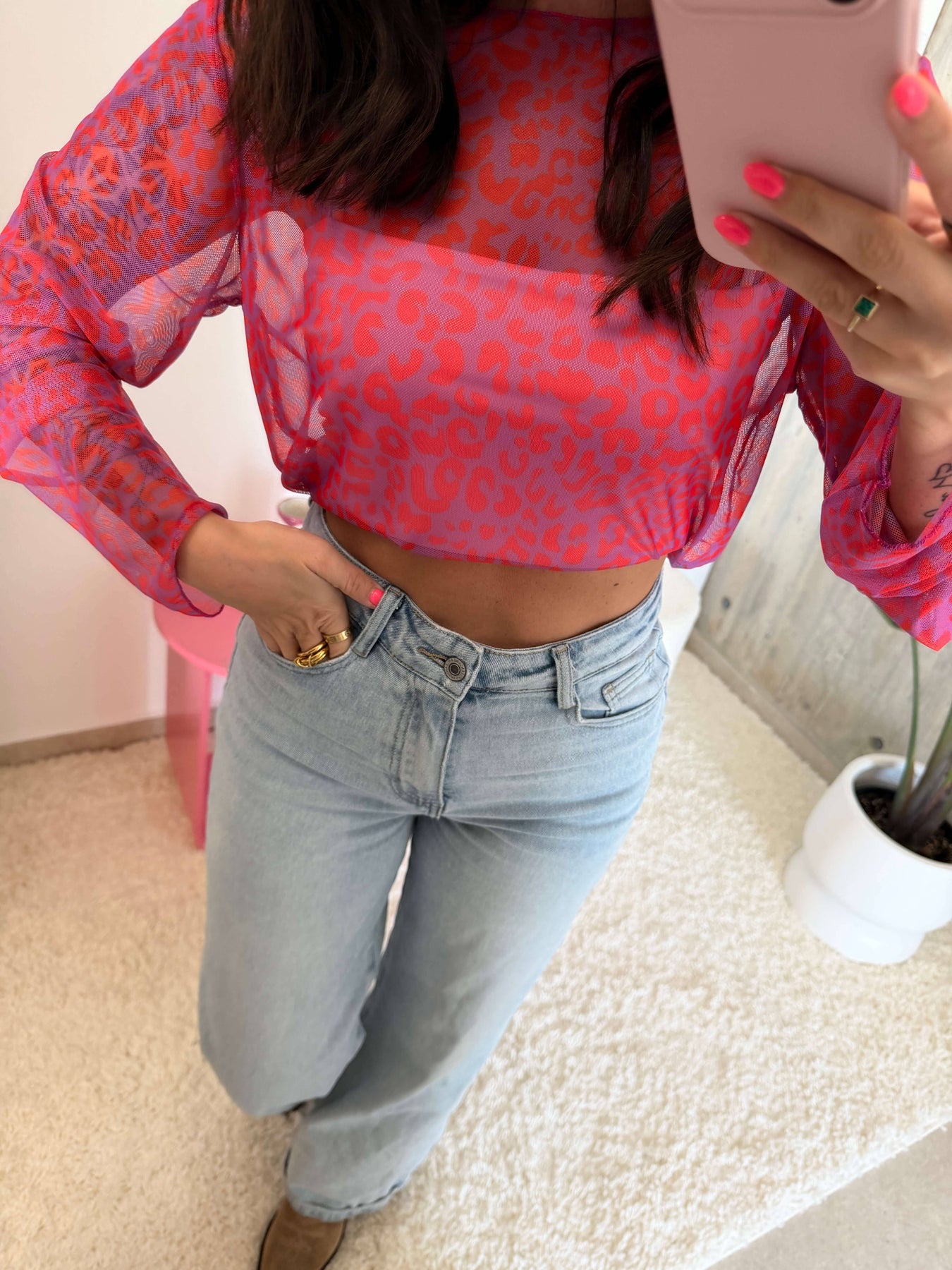 Leoprint Mesh Langarmshirt – Pink
